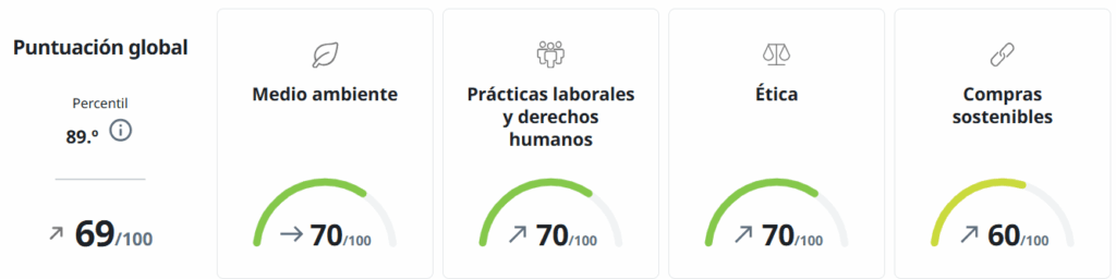 EcoVadis nos proporciona una metodología reconocida internacionalmente para medir nuestro desempeño en criterios ESG (ambientales, sociales y de gobernanza), permitiéndonos: